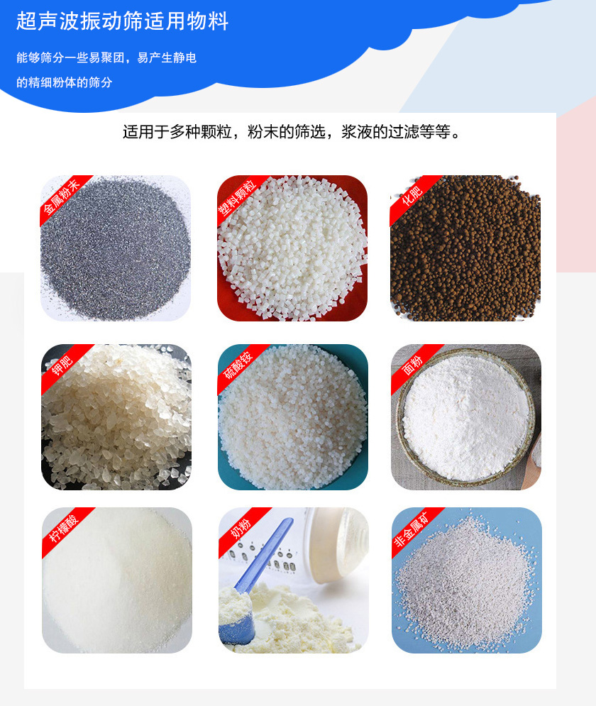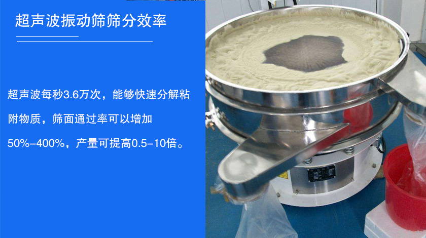 超聲波振動篩超聲波振動篩每秒3.6萬次,能夠快速分解粘附物質,篩面通過率可以增加50%-400%,產量可提高0.5-10倍。