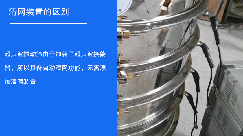 超聲波振動篩由于加裝了超聲波換能器,所以具備自動清網功能,無需添加清網裝置。