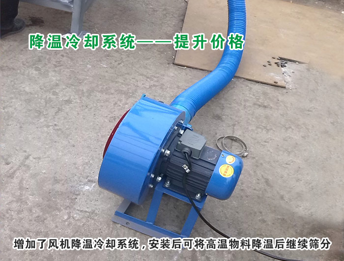 降溫直線振動篩是在大漢生產的DZSF系列直線振動篩的基礎上,增加了風機降溫冷卻系統的新型直線振動篩,安裝后可將高溫物料降溫后繼續篩分,這樣一臺風機降溫冷卻系統的價格在幾百到上千元不等,這是降溫直線振動篩加高提升的一個方面。