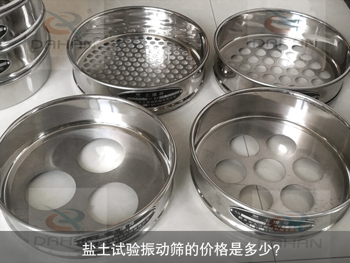 大漢機械生產的鹽土試驗振動篩可分為試驗篩機和試驗篩框,單臺試驗振動篩機的價格為:3500元,一臺篩機配7個篩框,直徑有200mm、300mm兩種型號,網目多種,具體網目可根據用戶需求定制,篩框的價格在100-300元/個,這兩種產品可以分開購買,所以這也是影響試驗篩價格的因素。
