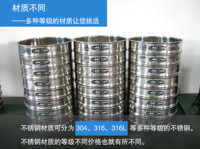 大漢機械生產的鹽土試驗振動篩上部由固定黃銅螺帽、壓板、篩蓋、篩框、中篩框、篩底、等距調節桿等部件組成,所有部件均是選用優質不銹鋼精制加工而成,而這種不銹鋼材質可分為304、316、316L等多種等級的不銹鋼,不銹鋼材質的等級不同價格也就有所不同。