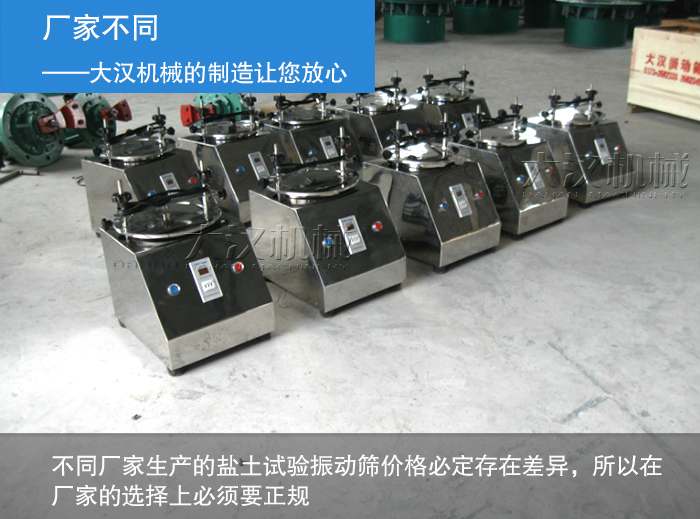下面大漢小編就為您簡單分析一下影響造成鹽土試驗振動篩的價格區間的因素有哪些呢?