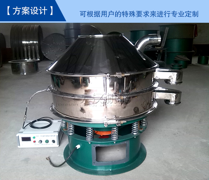 【方案設計】—— 這是大漢機械在標準型號上延伸的定做方案,可根據用戶的特殊要求來進行專業定制(如:框體、底座加高,進料口加料斗,出料口加閘門等)為您打造專屬的貴金屬粉末超聲波振動篩。