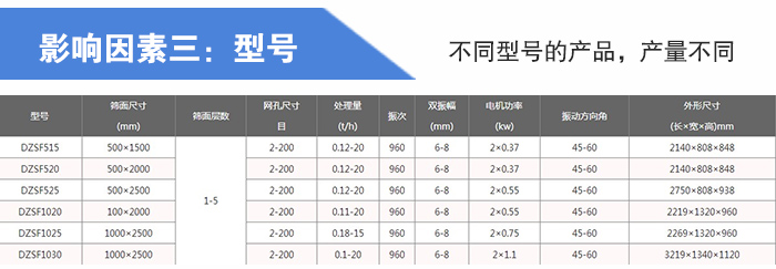 大漢機械生產的直線篩型號有:DZSF-515、DZSF-520、DZSF-530、DZSF-1020、DZSF-1030、DZSF-1540等標準型號,不同型號的產品皆是為了滿足不同用戶對于葵瓜子仁生產線篩分的需求,想要篩分大產量葵瓜子仁就需要使用大型號的直線篩,所以篩分產量是影響型號的重要因素。
