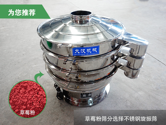 以上就是小編為大家帶來的草莓粉不銹鋼旋振篩介紹,希望大家能通過本篇文章,選擇到合適的草莓粉振動篩,如果您有什么問題可以隨時咨詢我們的人工客服,大漢機械會給您以專業的解答。