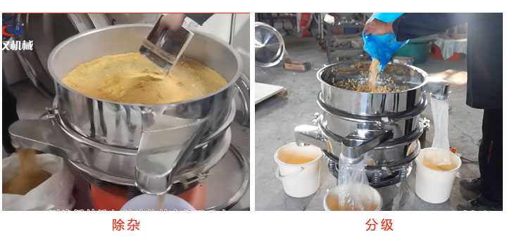 1、除雜:使用單層食品專用旋振篩可以達到除雜的目的,如篩分出碎茶渣、芝麻中的小石子、豆漿中未打碎的豆子等;