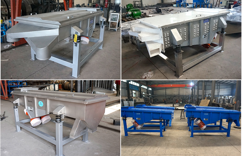不銹鋼直線振動篩有:DZSF-515、DZSF-520、DZSF-1020、DZSF-1025、DZSF-1030、DZSF-1035、DZSF-1540等長、寬、高不同的機型。