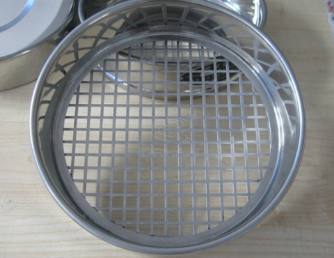 2、金屬沖孔板標準篩:簡稱板網篩,直徑: 200mm、300mm,篩孔尺寸:1mm~125mm,執行標準:GB/T6003.2-1997(相當于ISO3310.2)。